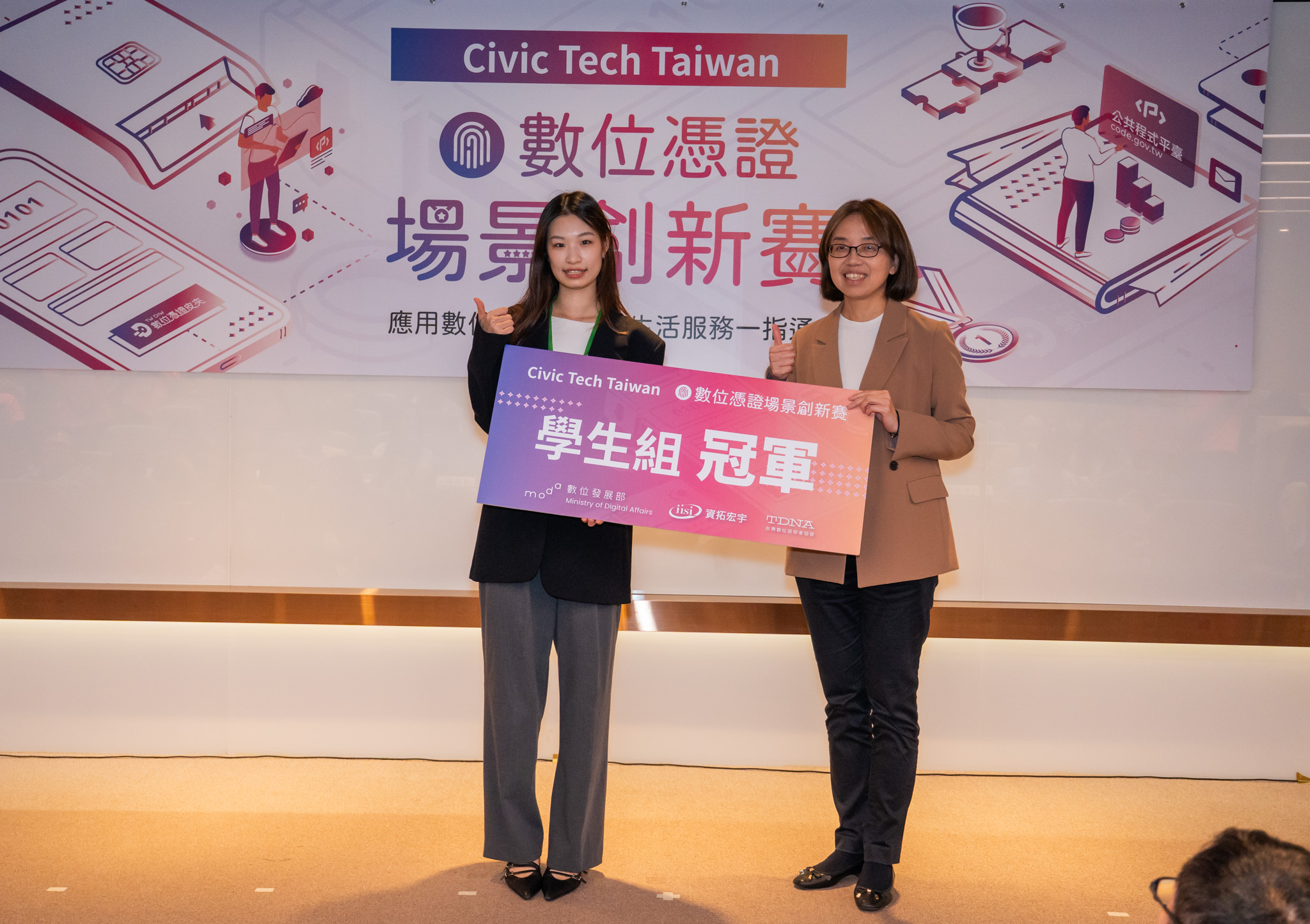 數位發展部今(24)日舉辦「Civic Tech Taiwan-數位憑證場景創新競賽」,以「數位憑證皮夾」為核心主題,結合公民科技精神,鼓勵全民參與數位轉型實踐。本次競賽共有24支隊伍、超過50位設計師、學生與社會人士組隊參賽,經過技術輔導與嚴謹評選後,社會組、學生組各有6組團隊脫穎而出,展現民間創新與公共數位服務結合的實踐力。
